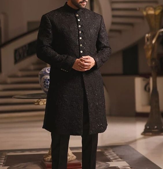 Elegant sherwanis designed for weddings and special celebrations, showcasing rich craftsmanship.